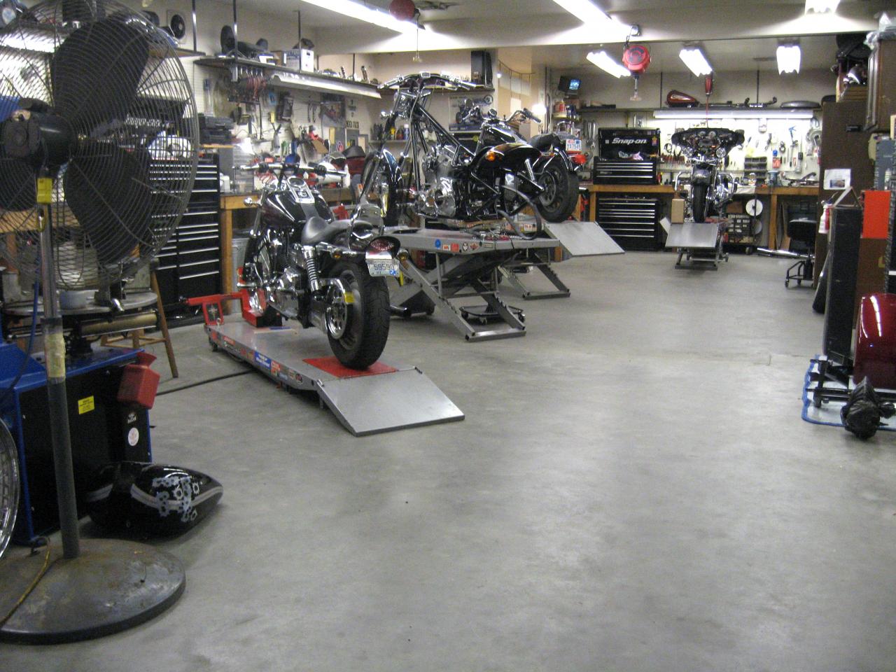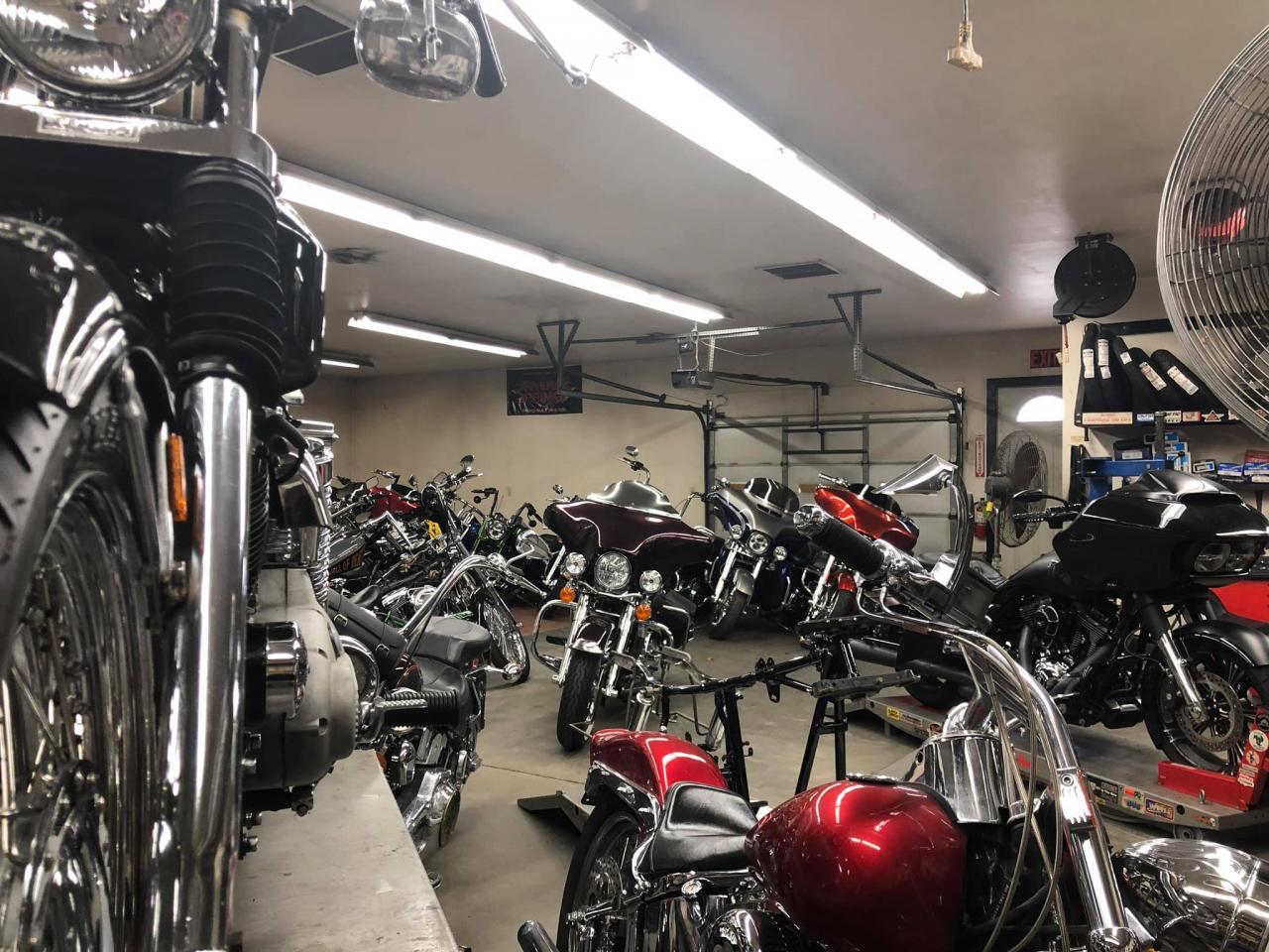 Our Service Department is complete with a machine room, an engine assembly room and an area dedicated solely to motorcycle storage. We offer your standard motorcycle maintenance, motorwork for all the Motorheads, added extras to get your ride looking good and Custom builds. Fabrication and customization to set your mean machine apart from all the others.