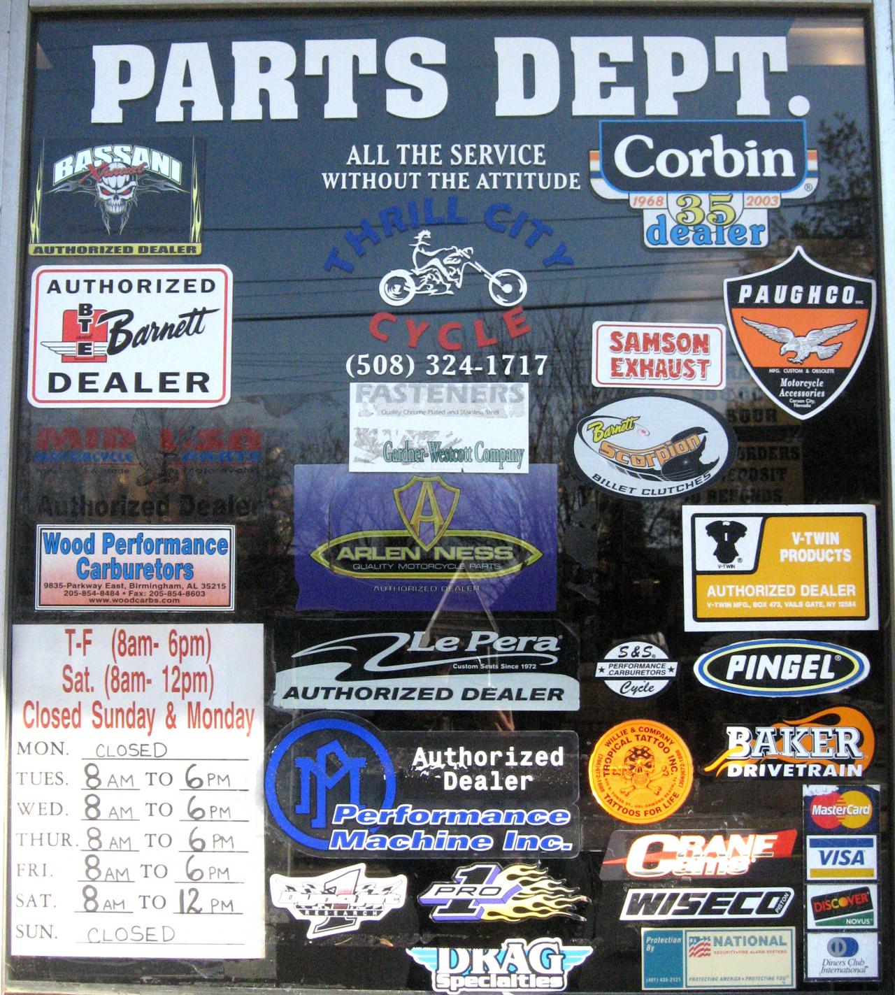 Our parts department carries a wide variety of motorcycle vendors. If we don't have it in stock, WE CAN GET IT! Catalogs are also available for you to look through. Take a seat and take your time. If you have any questions we are more than happy to help you. You tell us what you like and we will do our best to assist you. Our motto is "All The Service WITHOUT the Attitude!" To us EVERY customer is important.... who wants to hear "Take a Number...."? You are more than a "number", YOU are the reason why WE are still in business!